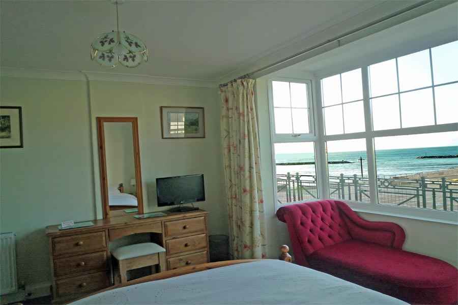 - A double bedroom on the mezzanine floor with views to Salcombe Regis